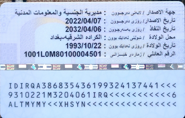 البطاقة الوطنية من الامام والخلف - National ID Front & Back -