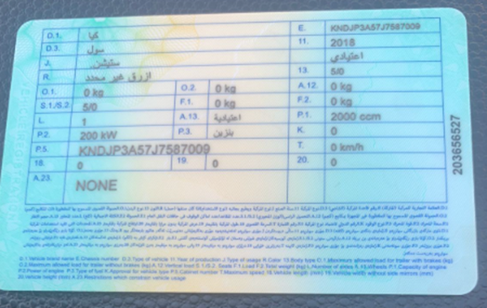 ● يُرجى التقاط صورة لكلا جانبي شهادة تسجيل سيارتك
