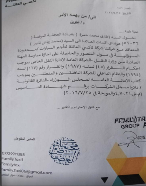 يتم قبول الجنسيات الغير عراقية بشرط ان يكون السائق لديه اقامة عراقية او رخصة قيادة عراقية وكل هذه المستندات صادرة من الجهات العراقية المعنية
