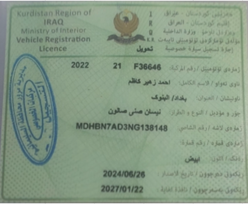 رخصة المركبة من الأمام - - (Certificate Of Vehicle Registration)