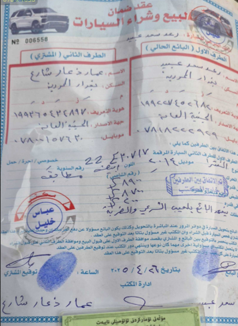 يتم قبول السيارات في العراق بشرط ان تكون السيارة بأسم السائق او بأسم احد أقاربه من الدرجة الأولى عند توافق هذه الشروط يتم قبول السيارة إذا لم يتم توافر هذه الشروط يجب تحميل صور توكيل عام أو عقد بيع أو مبايعة للسيارة بشرط تكون مختومة و موثقة من الجهات المعنية بالأمر و مذكور اسم الموكل و المشتري.