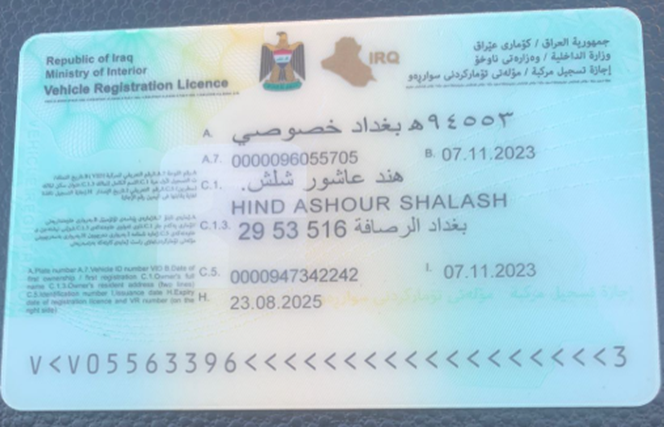 رخصة المركبة من الخلف - (Certificate Of Vehicle Registration (Back Side)