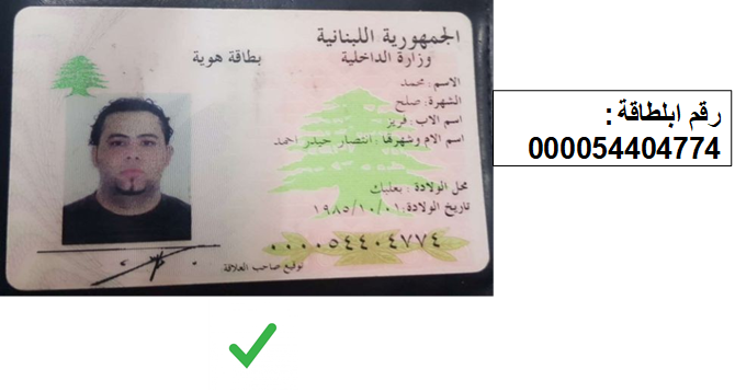 ● بطاقة الهوية اللبنانية من الامام والخلف