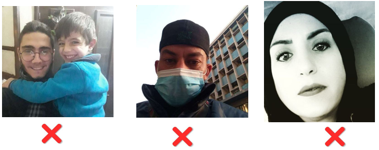 ● ﻗم ﺑﺗﺣﻣﯾل ﺻورﺗك اﻟﺷﺧﺻﯾﺔ - ﯾﺟب أن ﯾﻛون ھﻧﺎك ﺷﺧص واﺣد ﻓﻘط ﻓﻲ اﻟﺻورة