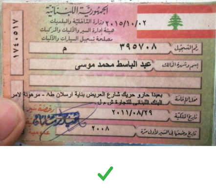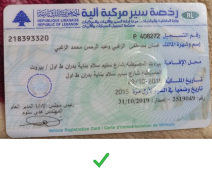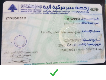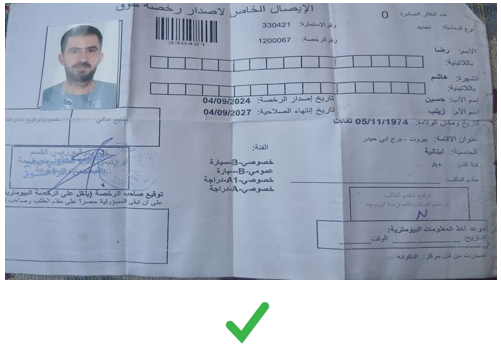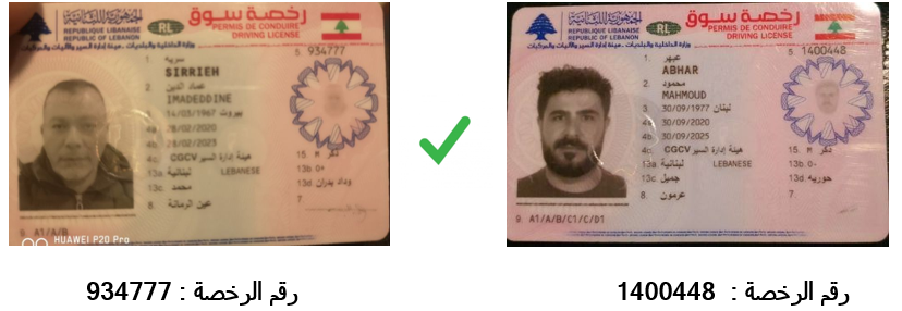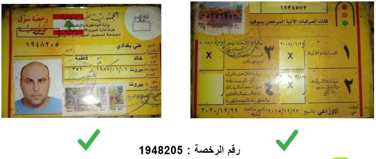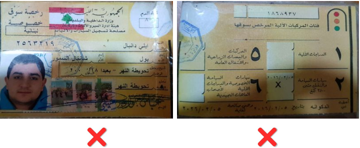 · ﯾﺗم ﻗﺑول ﺑطﺎﻗﺔ اﻟﮭوﯾﺔ ﻟﻠﺳﺎﺋﻘﯾن ﻣن اﻟﺟﻧﺳﯾﺎت اﻟﺳورﯾﮫ واﻻردﻧﯾﮫ ﺑﺷرط وﺟود رﺧﺻﺔ ﻗﯾﺎدة ﺻﺎدرة ﻣن اﻟﺟﮭﺎت اﻟﻠﺑﻧﺎﻧﯾﺔ اﻟﻣﻌﻧﯾﺔ