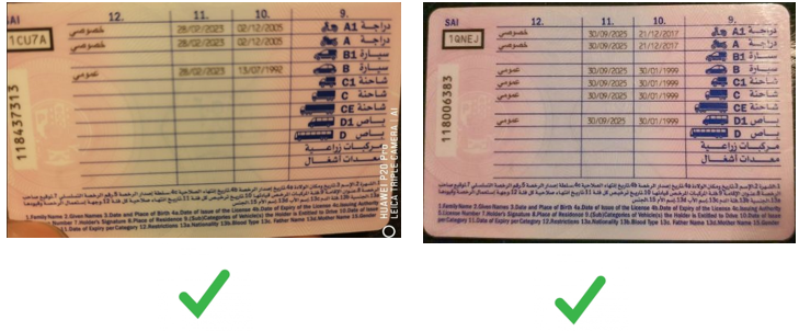 · ﯾﺟب أن ﺗﻛون ﺻورة رﺧﺻﺔ اﻟﻘﯾﺎدة أﺻﻠﯾﺔ وﻟﯾس أﺧذ ﺻورة ﻋن ﺻورة ﻣوﺟودة اﺻﻼ