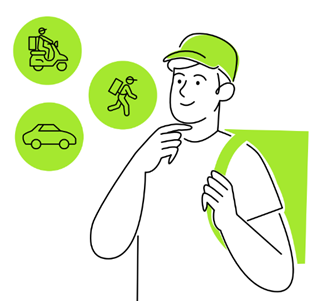 - عمال التوصيل بالسيارة أو بالموتور أو بالدراجة أو سيرا على الأقدام - Courier