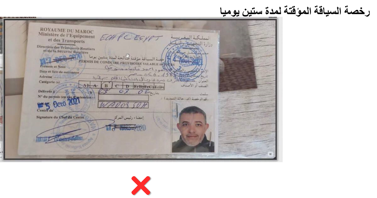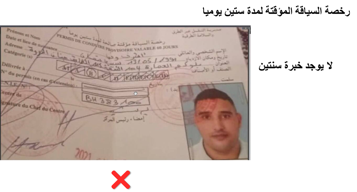 رخصة السياقة المؤقتة لمدة ستين يوميا