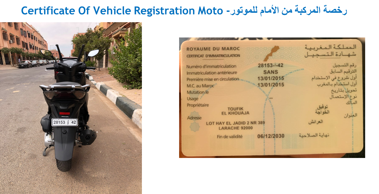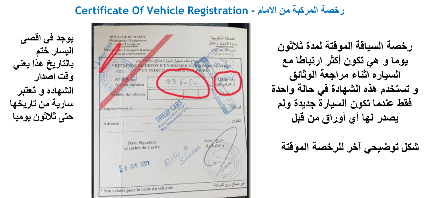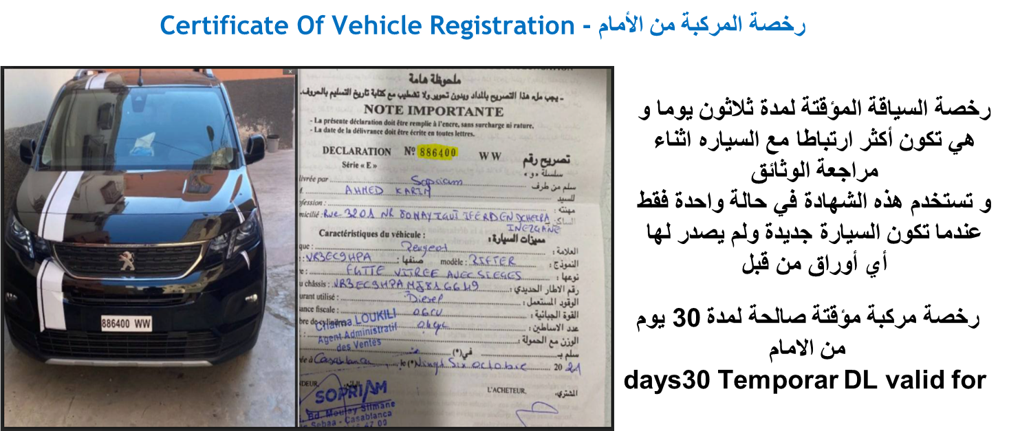 ● رخصة المركبة من الأمام