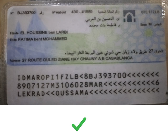 بطاقة التعريف الوطني من الامام والخلف - National ID Front & Back