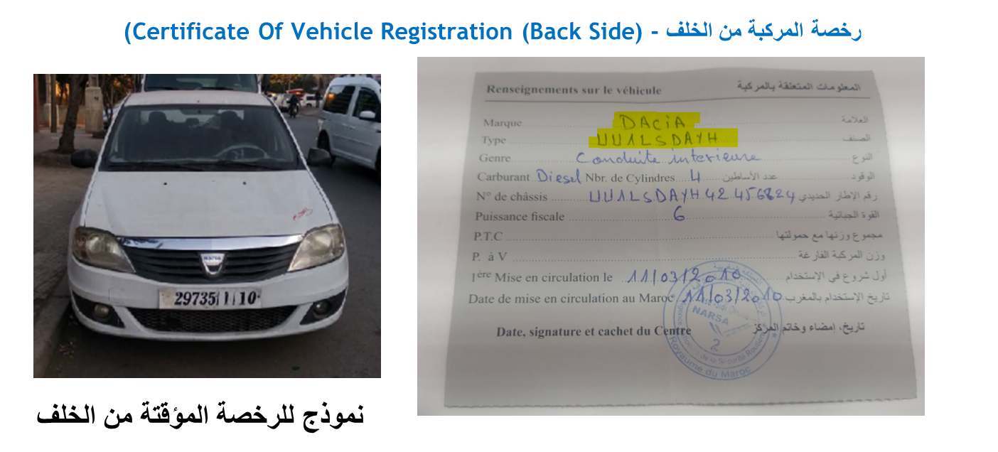 ● رخصة المركبة من الخلف